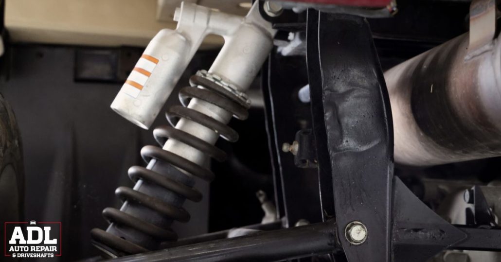 close up image of a vehicle suspension - ADL Auto Repair & Driveshafts suspension and alignment