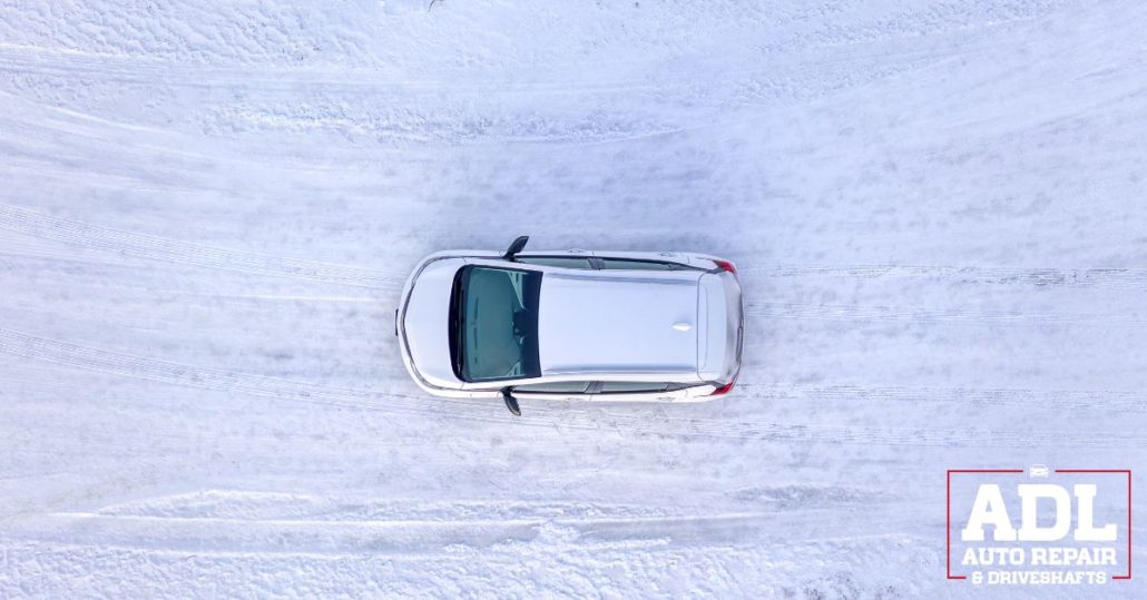 overhead image of a vehicle driving on a snow covered road - ADL Auto Repair & Driveshafts Driveshaft Repair in Hugo
